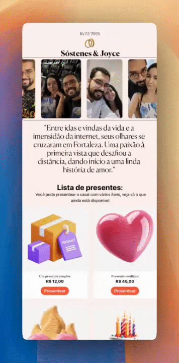 🎁Crie uma página de casamento e receba diretamente no seu PIX 🩷Add several photos of the couple on the page